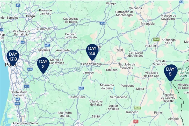 Discover one of Europes most scenic river journeys on this unforgettable eight-day cruise through the spectacular Douro Valley, a UNESCO World Heritagelisted landscape and the heart of Portugals renowned wine region. Beginning in the vibrant city of Porto, youll sail beneath the iconic Dom Luís I Bridge before cruising through breathtaking scenery of terraced vineyards and charming riverside towns. Along the way, discover picturesque destinations including Entre-os-Rios, Peso da Régua, Vega de Terrón and Barca dAlva, each offering a wonderful glimpse into the culture, landscapes and world-famous wines that make the Douro Valley so special.